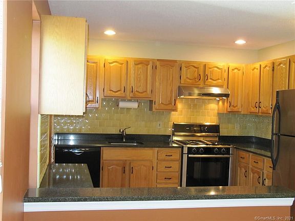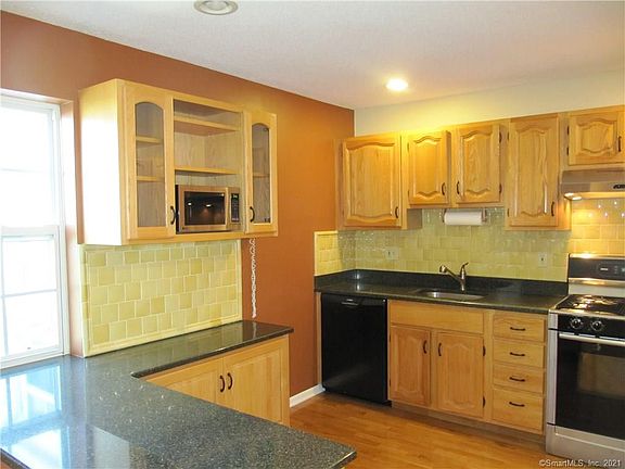 Welcome to Foxboro - beautifully maintained complex with attractive grounds on the Wilton line. Dramatic tri-level end unit - light, bright, and airy with an open floor plan. Attractive laminate flooring throughout the first floor. Living room with soaring ceiling and a bay window opens to 11' x 10' sun-drenched deck. Dining area open to kitchen and living room. Kitchen has granite counters, tile backsplash, Bosch dishwasher and gas range. Spacious master bedroom with crown molding, large walk-in closet, and tastefully updated bath with separate tub and shower. Main floor powder room with brand new full-sized stackable washer/dryer. Loft with skylight & new laminate flooring. Gas heat, C/A, attached one car garage and private storage in lower level. Extremely convenient location - close to highway, shops, and great restaurants. Short drive to Metro North train station with direct trains to NYC. New photos coming soon - these are prior to the new flooring in the loft!