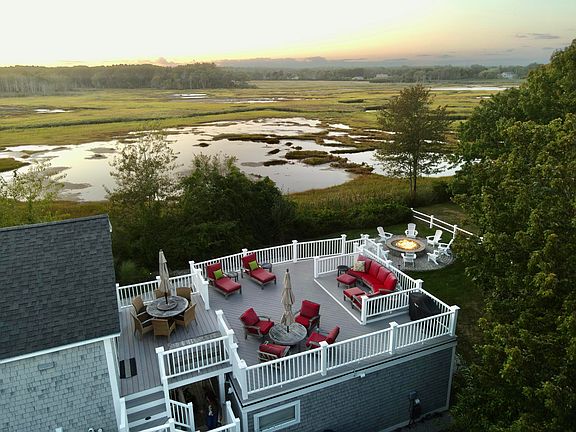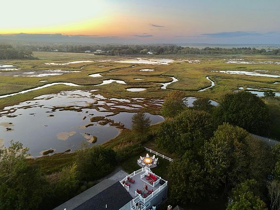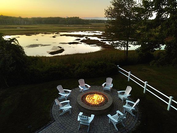 Charming cobblestone drivewayLush yardCustom finishesSweeping marsh viewsOutdoor showerGas fire pitOpen-concept living