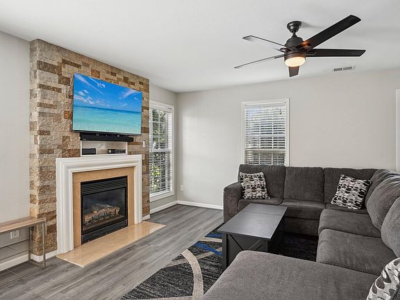 Welcome to your new home! This beautifully designed 2-bedroom, 2.5-bathroom condo offers a perfect blend of comfort and style, filled with natural light throughout. As you enter, you'll be greeted by a spacious living room featuring a cozy fireplace. The well-appointed kitchen boasts sleek granite countertops and modern stainless steel appliances. Both bedrooms are located on the second floor, each with soaring high ceilings, ample closet space, and their own en-suite bathrooms for ultimate privacy. Step outside to your private, fenced-in back patio—perfect for morning coffee or evening gatherings. Plus, an extra storage closet ensures you have space for all your essentials. Two dedicated parking spaces right off the back patio and nearby visitor parking! Enjoy relaxing at the community pool! Situated in the heart of Downtown Kernersville, you'll enjoy easy access to a variety of restaurants, shops, and local attractions. Don't miss the opportunity to make this lovely condo your new home!
