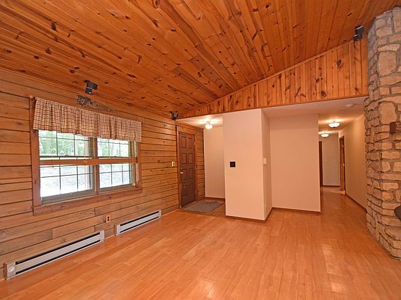 Your hilltop retreat awaits....beautiful log home nestled in the woods with ultimate privacy! Partial/seasonal river view with large deck and hot tub. 24x36 detached garage. Full basement with walkout. New carpet in bedrooms. Completely updated & remodeled bathrooms. New faucet, sink, garbage disposal, and flooring in kitchen.