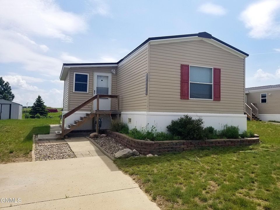 Welcome to 302 Hawk St, a charming mobile home nestled in the heart of Lincoln, ND. This well-maintained home offers comfortable living and an array of desirable features. Step inside and find a custom built mud room and an inviting open floor plan, creating a spacious and airy atmosphere. The living area is perfect for relaxing or entertaining guests, while the adjacent kitchen is adorned with newer appliances, making meal preparation a breeze. If you go down the hall, there are 2 bedrooms and a main bathroom. On the other side of the home is the primary bedroom and suite with a walk in closet and a soaker tub. Outside, a steel roof ensures durability and longevity, offering peace of mind for years to come. The property also includes a shed, providing additional storage space for your belongings. The shed comes stocked with a mower, snow blower, and all other yard tools, making it easy to maintain the beautiful surroundings. The best part is there are no neighbors behind you, so it's very peaceful! This home presents a wonderful opportunity for those seeking comfortable and affordable living. Don't miss out on this one!