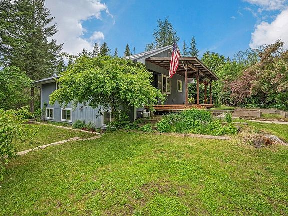 This 4-bed 2 bath multi-level residence offers a comfortable and spacious living experience. The main level boasts an open layout, seamlessly integrating the kitchen, dining, and living room area. The entire interior has been freshly painted and the upstairs boasts bamboo flooring and new carpet in the bedrooms. The recently renovated downstairs area offers a cozy family room, new T&G ceiling throughout, new LVP flooring, new vinyl windows, a utility room, ample storage, and two additional bedrooms with a bathroom. This desirable home is set on 4.78 wooded acres, that includes multiple outbuildings, a lean-to for parking boats, RVs, vehicles and equipment. The seasonal Creek, raised garden beds, covered deck, chicken coop and fruit trees add to the charm and natural beauty of the property. Conveniently located only minutes from town and area amenities. Experience the perfect blend of modern comfort and serene country living in this beautiful, move-in ready, Priest River home.