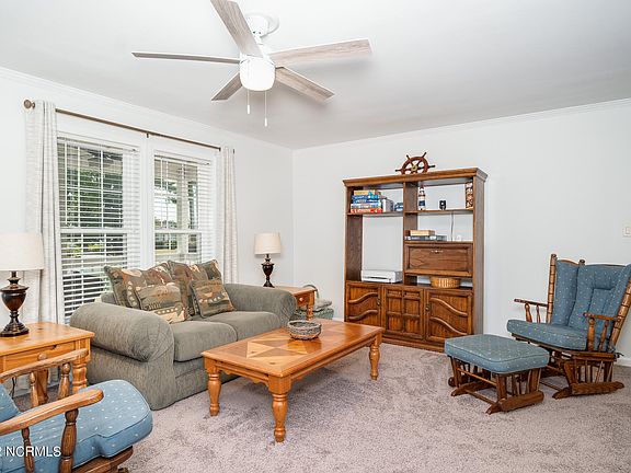Lovely one story 3 bed, 2 bath home in the heart of Cape Carteret! Master suite, open kitchen, breakfast nook and family room. Second living area with den, 2 bed, full bath and additional flex room. Detached 1 car garage and lots of extra parking spaces. Close to all shopping and minutes from the beaches on the Crystal Coast. The neighborhood offers a boat ramp, the pier providing access to Bogue Sound.