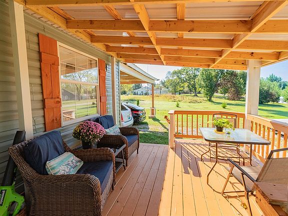 This 2002 model home offers 1,120 sq. ft. of comfortable living space with thoughtful updates and plenty of extras! Updates include; a covered porch addition, carport, and detached garage all newly constructed in the past year. Inside, you’ll find Pergo waterproof laminate flooring, a huge tiled double shower, and a converted bedroom now serving as a formal dining area. All appliances stay, making this move in ready. Enjoy the outdoors from the massive covered front porch with built in flower boxes or the spacious covered two-car carport which can easily be converted into additional living space if desired with 10 new windows that can convey. A standout feature is the 30x40 separate workshop/garage, complete with electric and water access. It’s perfect for hobbies, storage, or could be converted on one side into a 600 square foot apartment already framed and ready to be finished out. An attached pen is ideal for small animals. Located in the county but close to city limits, the property offers natural gas availability, lots of room for expansion, and the peaceful setting you’ve been looking for. This one is waiting for the perfect buyer...come see the possibilities!