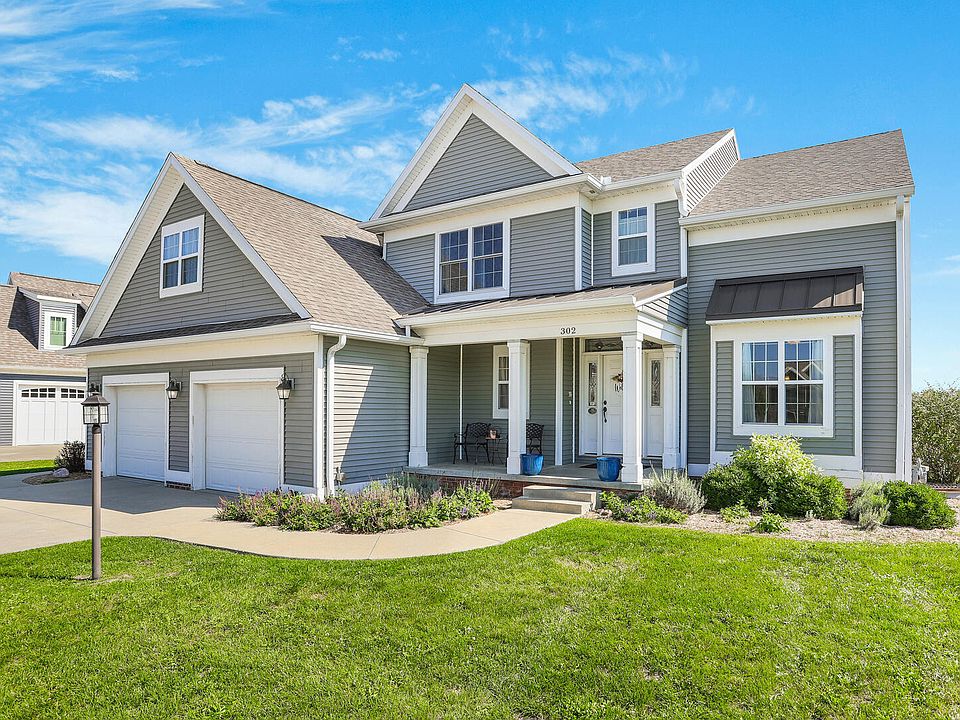 Designed with function & comfort in mind, this custom floor plan features an inviting interior and generous living spaces for modern family gatherings. With nearly 3800 finished square feet, there is plenty of room for everyone to spread out. Overflowing with counter space and cabinets, the beautifully appointed kitchen is equipped with Kraftmaid cabinets, granite countertops, a large custom center island, and a 36-inch Kitchenaid dual fuel range with a hood. Adding to the home's charm are hardwood floors throughout the first & second floors, upgraded trim and beadboard accents, built-in bookcases, and a custom carpentry mantel. In the study, you will find a built-in granite desk with cabinets, copper finished tin ceiling, and a lovely window seat. The fabulous primary suite includes a separate sitting area with built-ins, a large walk-in closet, and a beautiful bath. You'll love having two laundry areas; one upstairs and another in the basement. There are as many as seven functional bedrooms throughout. Enjoy the indoor/outdoor lifestyle in your charming backyard which includes a fabulous covered patio, a beautifully manicured lawn, and a fantastic garden shed fully finished with electrical. The possibilities for this space are endless. Located adjacent to the Liberty on the Lake green space and has easy access to the walking path that goes along the lake. The neighborhood HOA puts on many fun events every year including a summer bash, Halloween parade, chili cookoff, and movie night in the park to name a few! There's something for everyone! UPDATES to be done by the end of October include: new roof on house and shed, replacing all wood exterior with maintenance-free composite, and replacing carpet on stairs with Coretek stair treads that match existing flooring. Don't miss out on owning this fabulous home!
