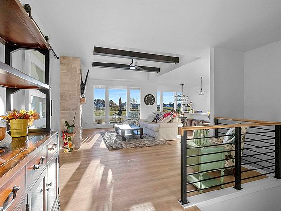 Split design ranch home, on .82 acre lot overlooking Royal St. Pats golf cours, all the upgrades are done; Better than new w/ lawn in, all concrete including lrg patio, LVP upgrade throughout, upgraded light fixtures, barn door & more. Contemporary & elegant feel in this open concept floor plan overlooking the golf course featuring floor to ceiling stone F/P, huge butler pantry, sleek foyer, office/den/sitting room, large quartz island w/waterfall effect & tile back splash, open concept dining area/sunsets every night, Mstr suite w/custom walk in shower, 1st floor laundry room, powder rm/ 1/2 bath & mud room has built in locker/bench off garage. Stairs from garage to basement, LL exposed windows & rough ins ready to finish as you wish! ONE YEAR GOLF MEMBERSHIP TO ROYAL ST PATS INCLUDED