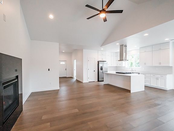 Welcome to your dream home in Amity, Oregon! This stunning new construction boasts 4 spacious bedrooms and 2 well-appointed bathrooms, including a luxurious en suite bath in the primary bedroom. The vaulted ceilings and beautiful engineered hardwood floors throughout create a bright and airy ambiance, perfect for modern living. The heart of the home is an expansive open-concept living, dining, and kitchen area, ideal for entertaining. Dual doors lead to a spacious backyard covered patio, offering a serene retreat with lush grass, laid brick, and a versatile gravel area. The large, fenced backyard provides privacy and ample space for outdoor activities. An oversized two-car garage ensures plenty of storage, while the large corner lot enhances the property's curb appeal. This home is thoughtfully designed with numerous features throughout, making it a perfect blend of style and functionality. Don't miss the opportunity to own this beautiful new home in Amity.