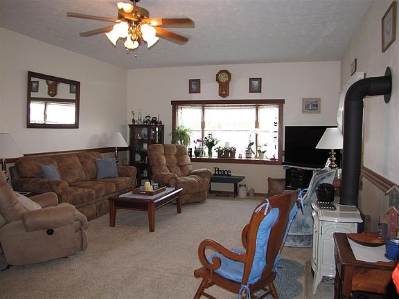 Here's a rare opportunity to purchase an older home in wonderful condition with 2.4 acres and a bank barn. The large living room has beautifully restored woodwork on the open staircase and a gas stove for chilly evenings. First floor master suite was added off the living room. The kitchen features oak cabinets and appliances that stay. 2nd full bath and laundry room are between the kitchen and 30x19 attached garage. Upstairs are 3 nice sized bedrooms and a 15x15 landing room that would make a great office/ den or kid's hang out. Off the dining area is patio doors to the deck with a hot tub, outdoor fireplace and private grilling area. 50x30 bank barn with 50x30 lean to for RV storage, your boat or critters. Seller is leaving a 7x9 greenhouse and raised beds. Part of the acreage is currently being farmed so the seller has less to mow.