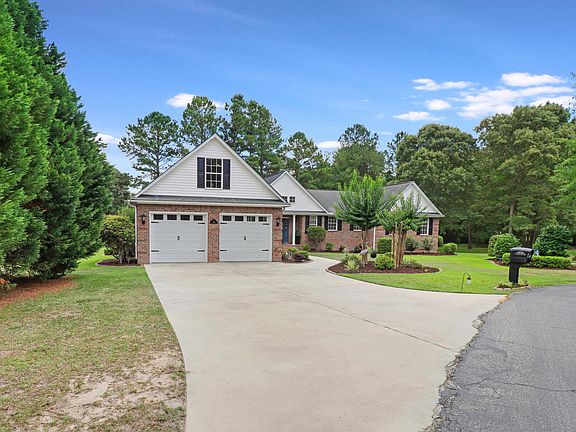 Welcome to this custom built brick ranch home located in the gated community Wyboo Plantation neighborhood. Situated on a spacious .39-acre lot, this property offers the perfect views of the 6th green on the Players Golf Course. With 3 large bedrooms, 3.5 bathrooms, a detached 2 car garage, a sun room, extended patio, and 2326 sq ft of living space, this home has everything you need.As you approach the property, you'll be immediately drawn to the picturesque exterior featuring an inviting front porch, and well cared-for mature landscaping. The attention to detail is evident from the moment you arrive. Meticulously crafted with attention to every detail, this residence offers unparalleled craftsmanship and quality. This home showcases a level of sophistication that sets it apart fromthe rest, resulting in a one-of-a-kind living space that combines elegance with modern convenience. Experience the pinnacle of comfort and style in this exceptional custom home that redefines the essence of upscale living. Step inside and you'll be greeted by a beautiful tall ceiling foyer with an abundance of natural light, and adorned with wood flooring that extends into the open living space. The main living area has an open concept design, allowing for seamless views from the kitchen to the rest of the space. The family room has a tray ceiling, a gas log fireplace to set the ambiance throughout the home, and built in shelving to display your loved ones. The dining area will fit a large table for your entertaining needs. If you need more dinner party space the kitchen has a nice sized eat-in area that's perfect for any meal. The kitchen offers ample cabinet storage, granite countertops, and stainless steel appliances, including a drop in cook top, and a double wall over. The kitchen island provides the perfect space for meal preparation and entertaining. The walk in butlers pantry is a great place to hide all your groceries, and kitchen accessories. Off the kitchen, and eat in area are patio doors leading out to a lovely sunroom, offering wonderful natural light, and stunning views of the beautiful mature trees surrounding the property and the 6th green. Step outside onto a large extended patio, perfect for grilling out or soaking up some sun while enjoying the view. The first-floor primary suite is a true retreat, offering ample space for arranging bedroom furniture, a private office area, a large walk in closet, and a private en-suite. The en-suite features ceramic tile floors, a large soaking tub, a glass door shower, and a dual sink vanity, providing a luxurious and convenient space for relaxation. The large laundry room is conveniently located near the master suite which includes a wash basin and folding area. Two additional generously sized bedrooms are located on the opposite end of the home providing privacy. Each bedroom has their own full bathroom with ceramic tile floors, and a walk in shower, ensuring comfort and convenience for all. The 2 car garage has a large storage space. Enjoy the best of both worlds with this home, embracing the country comfort while still being in close proximity to many amenities, including Lake Marion, golf courses, a boat slip, fishing spots, restaurants, and shopping options. Don't miss the opportunity to make this exceptional property your own. Schedule your showing today and start envisioning the peaceful and comfortable lifestyle that awaits you in this beautiful Wyboo Plantation home.
