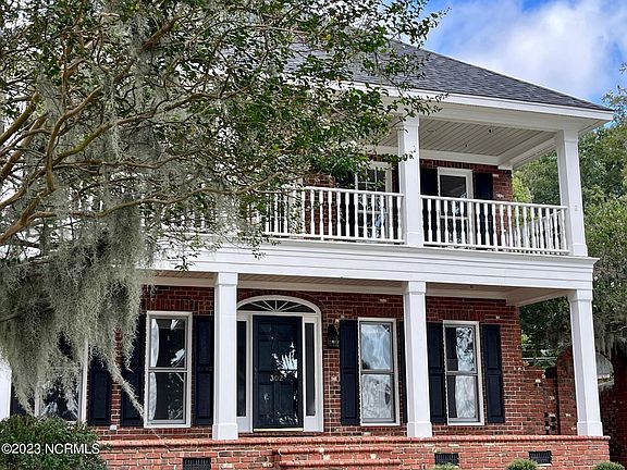 Sitting high on the bluff side of Lake Waccamaw is this stately 4 BR 3 Bath, 3,067 sq.ft. brick home that overlooks the gorgeous shores of LKW. Double porches across the front create viewing areas of the lake that have to be witnessed to believe. You can see across the entire lake from either level. Enjoy morning coffee from your upstairs porch located off of your master suite, and afternoon cocktails or sweet tea from your downstairs front porch. Moss draped trees sway in the ever present breeze as peaceful waters gently lap the shoreline. If you're looking for peace and relaxation, coming home to this place will take care of that! Step inside the home to a foyer with soaring ceilings and a regal staircase topped by a chandelier. The 2 story foyer has windows on both floors for views of the water as you ascend the stairs. The very large living room has a beautiful mantel trimmed fireplace and several windows looking out to the lake Focus is definitely on enjoying the beauty of the area. Down the hall from the living room, you will find a formal dining room to your right, a bedroom that can be used as a study, a huge kitchen loaded with custom built cabinets and a roomy breakfast nook. Right off of the kitchen there is a laundry room with separate storage. Moving upstairs, you will find the master suite with a massive bedroom and access to the 2nd story porch, double vanity bathroom, wet closet, and a walk in closet large enough to be a bedroom in itself. Two more spacious bedrooms with two closets and a sink in each room, as well as a jack-n-jill style bathroom joining the two rooms. Walk up stairs lead to the 3rd floor attic with ample storage space. Off the back of the home is a small porch and to the side of the home is a Charleston style patio courtyard that would be perfect for afternoon entertaining or family meals served outside. The property continues across the road and includes a pier with a boat house. Updates: paint,carpet, HVAC, Roof
