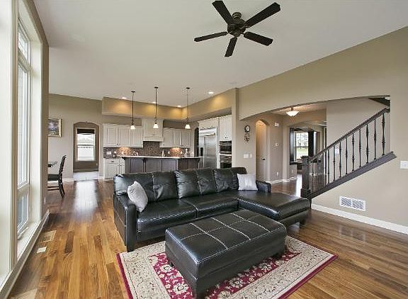 Fabulous views of Lake Riley! Enjoy the peace and tranquility of living in the country, with the convenience of an urban area. Open floor plan, 12' ceilings, gourmet kitchen, raised owners suite, lower level perfect for entertaining! Just gorgeous!