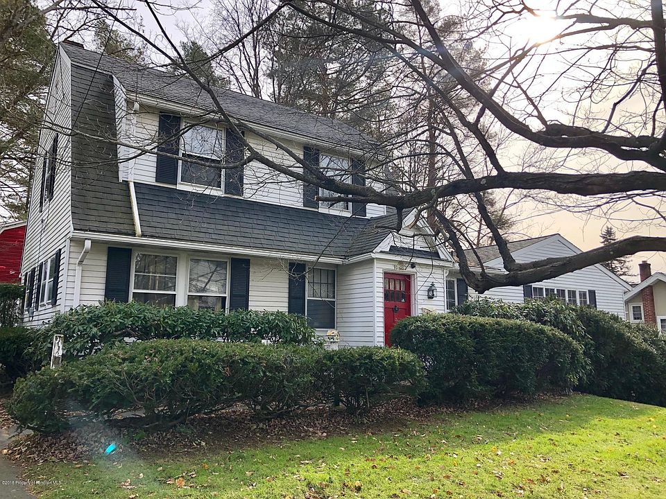 Great Clarks Summit location, convenient to town, in Abington Heights SD. This colonial with very nice curb appeal, sits on two separate parcels of land. It is being sold as is but has A LOT of potential. Wood Burning Fireplace in large family room, two berdooms, two car garage, one car detached garage, formal dining room, partially finished basement, beautiful stained glass windows, gas heat, public H2O and sewer, hardwood. Behind the house, there is a structure with electric & plumbing.