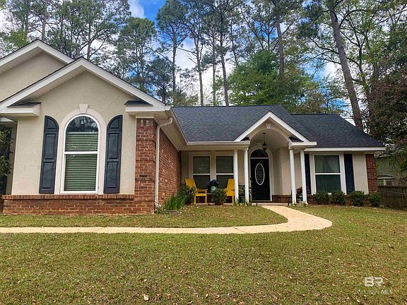 Discover this exquisite property located in Lake Forest boasting multiple upgrades nestled on a fenced cul de sac lot! This residence provides a central commute to either Mobile or Pensacola. Upgrades include Fortified Roof (New Roof), 30 RV hookup, transfer switch to run house off generator, HVAC 2 years old and updated kitchen. Kitchen features granite countertops, stainless steel appliances and tile backsplash. Split brick floors throughout living/kitchen area, custom barn doors welcome you into the guest quarters. Entertain guests effortlessly in this open living floorplan plus covered outdoor area ideal for football parties or cookouts. Don't miss the chance to call this charming property home! Professional photos coming soon.