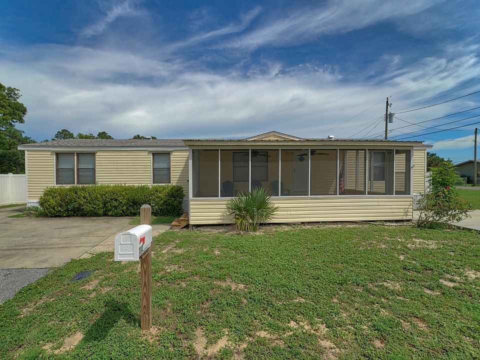 LAGUNA BEACH!!! This very cute double wide home has it all! It is being sold furnished and it is so adorable! It has tile flooring, upgraded kitchen huge screen porch, double lot, fenced in back yard, (with low maintenance fencing),storage shed for golf cart (which comes with home), double lot, 2 parking pads,(plenty of room for a boat or lots of cars)...and did I mention it is being sold furnished?! Truly this is a great find! Not only is the home terrific, the Laguna Beach location is awesome. Laguna beach has a beach lifestyle. This golf cart friendly community has its own grocery store with a gift shop & wine cellar. There is also Thomas Donuts (local donut and ice cream hangout down the street) and the best part is the reserved beach-it's only a couple blocks away. Come see this gem!