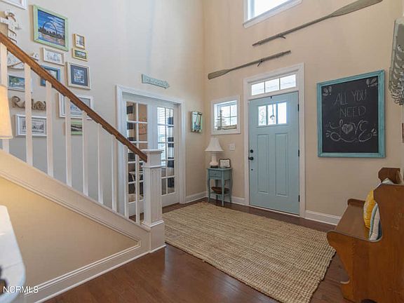 Pristine 4 Bed 2.5 Bath in Highly desirable waterfront neighborhood of Queens Harbor in Swansboro. Open concept with ideal layout. Privacy fence, over a half acre lot with plenty of privacy. Coffered ceilings, granite, stainless steel appliances, tile backsplash, pantry, gas fireplace, deck, study with French doors, upstairs laundry. Immaulate master Suite with custom built-ins. All bedrooms are great size and boast plenty of storage. Neighborhood has water access with Day Dock, picnic area. Short drive to Camp Lejeune, and less than 15 mins to the beaches of Emerald Isle. This one will be gone by the weekend!!