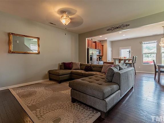 This well maintained end-unit fosters 3 BRs, 2.5 Bth, and 1 car garage. Large LR Kitchen Dining great room perfect for entertaining. Owners purchased new and highly customized w Granite tops, SS appliances, hard wood floors w thicker moisture barrier, recessed lighting, upgraded cabinet hardware, and more. Convenient to shopping rec centers, greenways, grocery stores and developing downtown Rolesville. Granite Falls Athletic Club Membership INCLUDED w HOA dues.