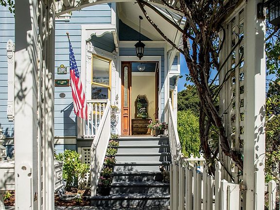 The living is easy in this one of a kind Beach Victorian in the paradise of Pacific Grove. Exquisitely renovated to its timeless splendor & perfectly retrofitted to belong to the 21st century, this two-story sky blue home is enchanting as ever with its perennial gardens, trellis entries, & historical abalone wall brimming with Cecil Brunner roses. This three bedroom, two bath masterpiece radiates with the feeling of home with its high vaulted ceilings, expertly restored chandeliers, intricate wall woodcarvings, original marble mantelpiece, & cherry wood floors create a perfect balance of luxury & comfort. Perfect for a friendly gathering or holiday retreat, this home is ideally located to enjoy strolls to the beach or to walk through downtown Pacific Grove. Whether enjoying breathtaking views of the bay from the chef-ready kitchen with breakfast nook or from the upstairs bedroom balcony, this Beach Victorian will leave you carefree and ready to seize any day.