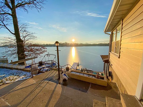 LAKEFRONT home in Fish Lake with beautiful unobstructed views from multiple levels and rooms. Eat in Kitchen with unique 7 diner stool alignment all with a great view of the lake from the main level. Their is a huge Living room with multiple views of the lake and sliders leading out to the waters edge. Main level also has 2 Bedrooms , a Dining Room, remodeled full bath, a quarter bath and a storage area. The lower level has a large Rec Room with a wood burner, a dry bar with Fridge and Stove area, utility/laundry room, and large storage/work area. There is also another shower and a urinal on this level. Just out the Rec room door is a 3 Seasons Room that is just steps from the lake and leads out to your dock.