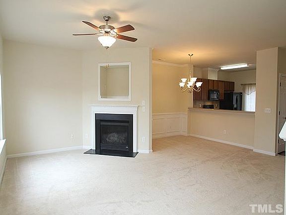 Charming home in great, growing area! Three-level living with a bedroom and full bath on first floor and two large bedrooms (each with their own bathroom) on third. Open, light-filled living space w/kitchen, dining area, family room and deck on second floor. Kitchen features lots of cabinets and counter space and a tile backsplash. Ceiling fans in all bedrooms and family room. "Gutter Guards" recently installed. HOA includes two pools. Convenient to RTP, I-540, shopping, activities, and more.