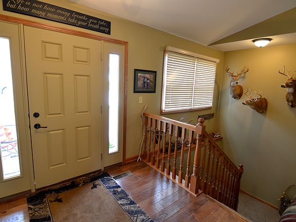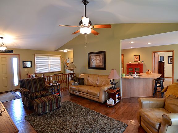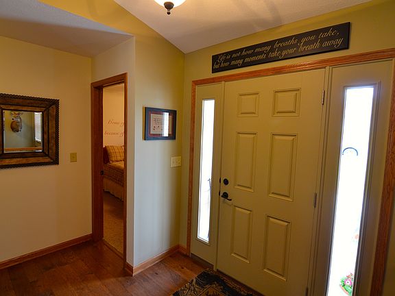 Spacious near-new 5 bedroom, 3 bath full walkout ranch on a professionally landscaped lot backing to the trees built by D&R. Vaulted ceilings in living room, hickory hand-scraped wood floors on main, Adura tile in bathrooms, stained oak trim throughout. Large eat-in kitchen featuring oak-edged countertops with stainless appliances and dining room. Home features additional storage with built-in shelving and storm shelter. Concrete siding, upgraded carpets, Pella Proline windows and sliding doors, cedar deck. Basement bar is plumbed and stubbed.