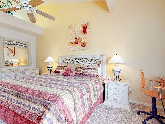 Take in the sunlight in the open living room, pile on the comfortable couch and chairs while you warm up by the wood-burning fireplace, or gather outside on your large deck to watch the golfers on the nearby golf course! What's nearby: Be sure to bring your clubs as you will be located off the 6th fairway of the highly reviewed Canyon Mesa Course. This rental is less than a mile from the 179 Highway where you will find plenty of dining and shopping options. Stop by Maria's Restaurant & Cantina for some homestyle Mexican cuisine, or make a night of it at the Grille at Shadowrock, a nearby upscale steakhouse. Spend the afternoon shopping at the outlets at Sedona Vista Village or drive over to the Tlaquepaque Arts & Crafts Village, an outdoor market featuring galleries and craft shops. And as this area is known for the gorgeous scenery, be sure to hike the nearby trails, Bell Rock & Sedona Trail Zen, less than two miles from your door! Things to know: Free WiFi Full kitchen with a dishwasher Parking Notes: Two-car garage plus one vehicle on the driveway. No street parking or the vehicle will be towed. No trucks, buses, trailers, horse trailers, boats, campers, recreational vehicles, motor homes, or vehicles other than passenger automobiles, pickup trucks and vans (less than ton) shall be permitted on the property, with the exception of daytime parking limited to deliveries and social visits. No overnight parking will be permitted for any of the aforementioned vehicles, unless kept completely within a garage with the garage doors closed.