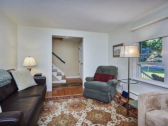 This IMPECCABLY MAINTAINED 1600 square foot Colonial style home has seen numerous updates throughout the recent years!! Home features a modern eat in kitchen & full bath, tastefully remodeled 1/2 bath, hardwood floors throughout with tile in the kitchen & baths, a formal dining room and a Beautiful Family room with fireplace . Updates include replacement windows, stylish exterior doors, an approx 10 year old roof(50 year shingle), newer 200 amp electrical panel, new hot water tank, rebuilt chimney and updated interior doors with white trim. The very well maintained exterior features a GREAT 19 X 12 rear composite deck, new front & side steps(both with composite decking and vinyl railings), 1 car attached garage, beautiful landscaping, storage shed and a front paver walk way that leads up to the cozy front porch! All this overlooks a peaceful rear setting w/wooded view that abuts the Manhan river!! Click on link to view the video tour.