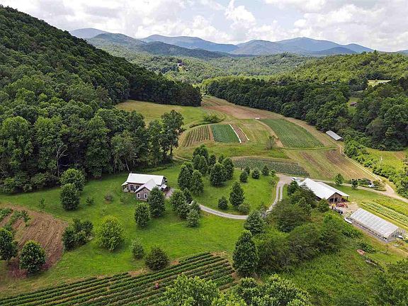 ONE HUNDRED ACRES! TWO CREEKS! GORGEOUS MOUNTAIN VIEWS! Farmhouse-style 3BR/2BA home built with locally milled posts & beams has open floor plan w/wraparound porch. Entire house is framed by hemlock, known for its natural pest & termite resistance. Property includes fertile farmland of which 10 acres have been certified as an organic farm, mature hardwood mountain forest, and ridge top access with incredible mountain views. Useable land with several gorgeous building spots. Large area cleared for potential pasture. Easy access from two roads. Lots of privacy. Ideal for hiking, farming, hunting, gardening, horses, or developing. Great place to live and work.
