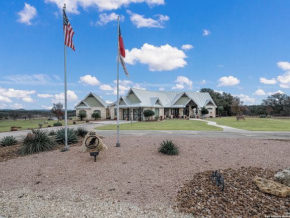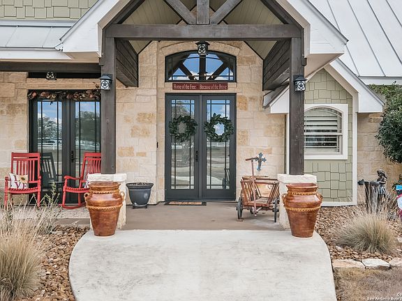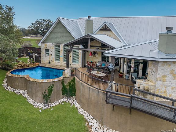 Nestled in the "Cowboy Capital of the World", lies this beautifully custom J. Marhofer build, where timeless elegance and functional luxury provide all the comforts you desire in a Hill Country estate. Bridlegate Ranch offers residents not just a place to live, but the Hill Country lifestyle they have dreamed of, in a community in which they can thrive! Featuring an abundance of amenities, including gated access, a private river park on the Medina River, clubhouse, workout center, two pools, an equestrian arena and sports courts, owner's guest rentals, plus miles of walking trails and bridle paths. Lots of activities and fun times for everyone! As you enter this one-of-a-kind home, your eyes will dance from the soaring ceilings of knotty alder wood and cedar beams to the rich hand scraped wood flooring, to the multitude of picture windows, which frame the Hill Country views spanning for miles. A concrete stamped/flagstone patio, complete with outdoor kitchen, lots of seating and eating areas with gas fireplace flows from the covered patio into your private oasis complete with in-ground, freshwater pool with waterfall feature and backdrop of antique oak trees. Back inside, the split floorplan features three bedrooms, a large living area with floor-to-ceiling stone-wrapped fireplace, sitting area extension off living room, dining room area and office space. The master bedroom offers owners retreat, adorned with tray ceilings and featuring an attached bath that feels more like a spa with dual vanities, vintage soaking tub and expansive walk-in shower. Two spacious closets feature pull down rods and built ins. Two guest bedrooms are separated by a jack and jill bath with large walk-in shower. The gourmet kitchen is complete with a dual fuel Wolf stove, built-in drawer microwave and warming tray in large island with vegetable sink and plethora of custom built knotty alder wood cabinets with pull out drawers, equipment and dish drawers. The oversized pantry has an appliance bar with lower built in shelves and drawers and the walls are lined with built in shelves. Behind the Wolf stove is a beautiful hand painted mural of a hill country scene. An attached workshop/garage and a large cedar greenhouse offer plenty of space for hobbies and those with a green thumb. There is a separate two car garage, as well. This beautiful estate also features mature landscaping with 200+ year old oak trees, plus an irrigation system in front and back to keep the specialty turf lush and green all year long. The acreage is gently sloping from the rear of the home and features a man-made creek of rocks, which were reclaimed from the old fireplace in the original clubhouse. Too much to mention on this beautiful property so a list of upgrades and specialty items are separately listed. Bring your most discerning buyers today - they will be delighted!