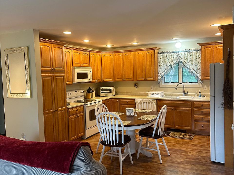 Main house has 8 rooms, 4 bedrooms and 1 full bath on the 2nd floor with a full attic. 1st floor has kitchen, living, dining and family room with a full bath and laundry area. In-law has large kitchen, living room huge bedroom and bathroom, all new and very bright. Both sides have seperate entrances to the front and back of the house with mudrooms.
