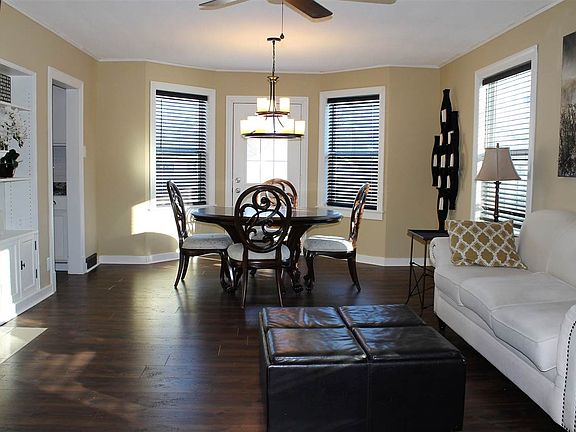Beautifully done 2 bedroom home with over sized garage and full basement. Relax by the fire place in the open floorplan dining and living room space. Lovely Kitchen updates. Centrally located with a full view of the city park.