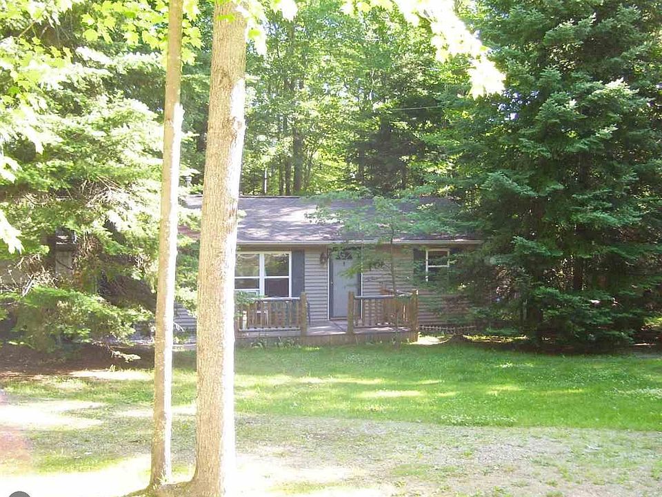 This home would make a perfect get away or year round home. Deeded access to Island Lake, which is a no motor lake. Very calm and relaxing lake to swim, fish, kayak or canoe in. You can also ride your Orv or snowmobile right to the trails from this home, access is just down the road. Interior has knotty pine, nice fireplace with insert, and an attached two car garage.