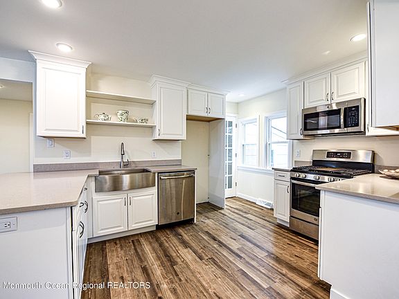 Totally renovated open floor plan craftsman quaintly located in Historic Tuckerton Village featuring 2 bedrooms with walk-up storage attic, walk-out full basement and full laundry with W/D. Some of the improvements include new Timberline HD roof; new insulated tilt-in vinyl windows; new electric wiring & panel; new insulation; new sheetrock; new eat-in-kitchen with soft-close cabinetry, granite counters w/breakfast bar & SS appliances; new waterproof vinyl flooring; new bath; new recessed and lighting fixtures; new ceiling fans with lights; new paneled doors; extensive new interior & exterior trim; fiberglass front porch with vinyl railings & stairs; and freshly painted throughout. Additionally, this home has gas heat and central air with new Nest thermostat, renovated detached garage, low property taxes, and 1 year Termite & Buyers Home Warranty. Convenient to all area shopping, restaurants, recreation, schools, Tuckerton Seaport, transportation GSP exit 58, Atlantic City and the beautiful beaches on Long Beach Island. Start your family memories today!
