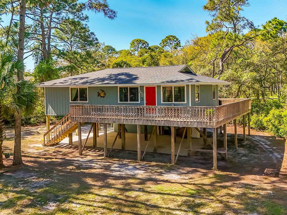 LOVELY Modern 4/2 w/ Pond, Deck, & Island Kitchen on 1.09 Acres! Bring your boat to this Outdoorsman's Paradise! You will adore this spacious home on pilings that features open floor plan, backsplash, plank vinyl floors, updated fixtures, large bedrooms, and more! There is an inside utility closet w/ washer/dryer, enormous deck overlooking the serene pond, animal pen, large storage room, plenty of space to park under the home, & beautiful private acreage! 2020 Roof & water heater, 2021 AC! Great location across the street from Ochlockonee Bay & walking distance from the beach & boat slip! St Marks trail is in front of the home where you can bike, walk, or skate on this 20.5 miles trail all the way to Tallahassee or St Marks. Mins from restaurants, shopping, & parks! Asking $330,000!