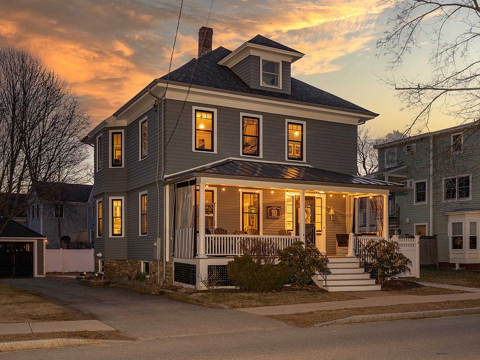 Welcome to 302 Miller Avenue, this classic beauty is a quick walk to Market Square and all that downtown Portsmouth has to offer. Nestled in the Little Harbor district, this exquisitely maintained and updated home is being sold FULLY FURNISHED! (Excluding art, kitchen wares, and linens) In the last few years this 1916 Hip American Foursquare has been completely renovated and updated, including, new roof with metal accents over porches, all new plumbing and electrical (to city code),new Pella windows (26), Hunter Douglas Shades, complete kitchen and bath renovations by KRB Builders, all flooring refurbished or replaced, added on-demand Rinnai water heater, Central Air, and so much more. Upon entering your new Portsmouth home, from your farmers porch, you will find a large bright foyer with original built in bench. Head on into your beautiful open concept chef's kitchen, featuring Jenn Air appliances, custom 4 seat island with Quartz countertops and Harmony Cabinets. The room next to the kitchen is currently being utilized as a second living room, but could be your dining room, and features a dry bar, and both a wine fridge and beverage refrigerator. Head upstairs to the second floor which features a laundry nook, guest bedroom, full guest bath and your gorgeous Primary Suite with oversized walk in closet, tile shower, soaking tub and double vanity. Up one more set of stairs, to your finished third floor bedroom. Outdoor space for BBQ's and gardens! Book your showing!