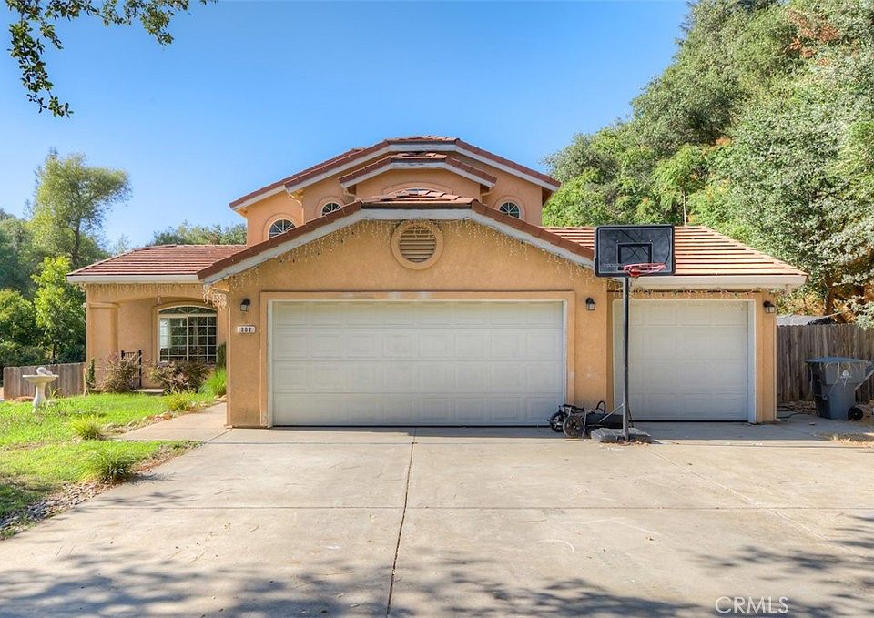 WONDERFUL SETTING! This 2336 Sq. Ft. Home w/FIVE BDRMs/3 BATH , 3 car garage, ON A VERY LARGE SECLUDED .60 Ac lot. Driveway is long & mostly level, plenty of room for a large RV! Located well above the Feather River & Salmon Hatchery/Fish Ladder! Close to Downtown, shopping, commute routes, recreation & schools. High ceilings & breakfast bar in L/R & Dining area ...Kitchen has lots of storage, center island, updated counters, & a wonderful Farmhouse Sink...other side of Kitchen opens up to Family room. There you find a zero-clearance gas fireplace & built-in alcoves. Follow the hall & find a full bath, the laundry room & ground floor bedroom. Exit out to the Garage.. Upstairs, find 4 more bedrooms, including another full bath, the large Mas. Bedrm. w/attached, large Mas. Bath, dual sinks, step in shower, & separate soaking tub... The placement of the slider, & the various windows, lends to an open cheery feel! In the back & side yards find concrete patio, with a fire pit, lawn, concrete walkway, & side yard raised garden beds! Leased SOLAR! Really nice & private setting! Please call your favorite REALTOR/Agent, for an appt. to view. Sellers need 24 hr. notice, please.