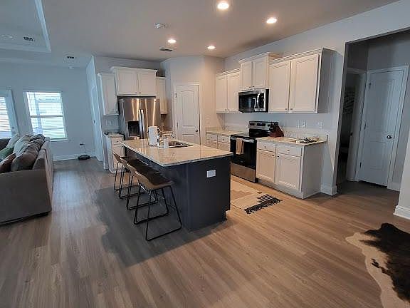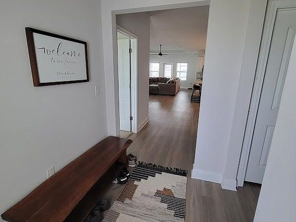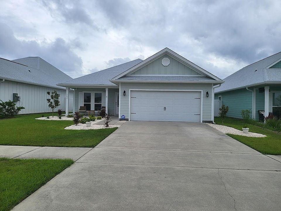 LIVE JUST 1 MINUTE FROM THE BEACH! This Isabella plan is a 4-bedroom, 2-bathroom, one-story home with a two-car garage. As you enter this home through the foyer that is open to the large kitchen, dining and living room, you will find elegant 9' ceilings and luxury vinyl plank flooring. All doors are finished with brushed nickel hardware and the walls have been finished with orange peel texture. The kitchen has a full size pantry, beautiful cabinetry granite counter tops throughout. The appliances include a smooth top stove, dishwasher, refrigerator and microwave. The master bedroom is located off the living room and has a large walk-in closet and a bath with a walk-in shower and soaker tub. This home has a designer lighting package as well as Smart Home Technology. The laundry room has vinyl plank flooring. Each bedroom has a spacious closets and plush carpet. This home is perfect for entertaining with its open areas and outdoor covered screened in porch, with a open back yard and patio. Moonraker is a centrally located community in Panama City Beach. A short walk or golf cart ride to public beach access and just minutes from shopping, dining and family entertainment. 1 Year lease