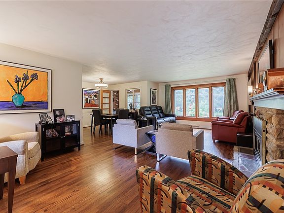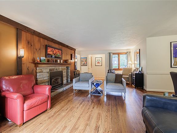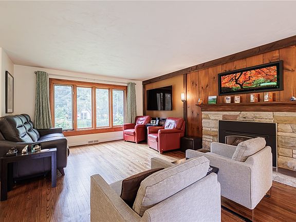 One of the most desirable neighborhoods in W. Irondequoit! Nearly 1 acre, private & wooded lot with tons of wildlife. Sleek, mid-century Ranch with many recent improvements. A perfect combination of original aesthetics and modern upgrades. Brand new eat-in kitchen with Quartz countertops, white cabinetry & stainless appliances. Completely updated full bath with walk-in glass-door shower & double sinks. Beautiful refinished hardwood flooring throughout. Open living/dining room has gas fireplace with stone surround. Enjoy the backyard view from the 3-4 season Sun Room– has natural wainscoting and slider to back patio. Basement has finished Recreation Room and tons of storage. Exterior has vinyl siding. Tear-off Roof 2023, Furnace 2022, A/C 2024, Generator installed 2022, EV Charger Outlet 2024. Delayed negotiations until Tuesday, August 20, 2024 at 9:00am.