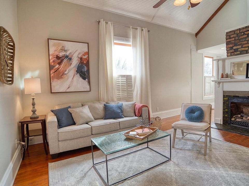 Beautifully furnished, two bedroom, two story duplex in Kirkwood. This large unit features high ceilings with beams, updated kitchen with gas cooking and stainless steel appliances, two bedrooms with ensuite bathrooms, a half bathroom off living room, laundry, two large walk-in closets, fenced back yard, back deck and covered front porch. This property is just one block from Sun in my Belly, one of the top breakfast / brunch spots in Atlanta! Close access to Highway 20 and 75. Convenient to studios in Conyers and Convington, as well as Black Hall Studios. Fully furnished and turnkey rental by Studio Housing Atlanta. Utilities and internet included. Perfect production rental.