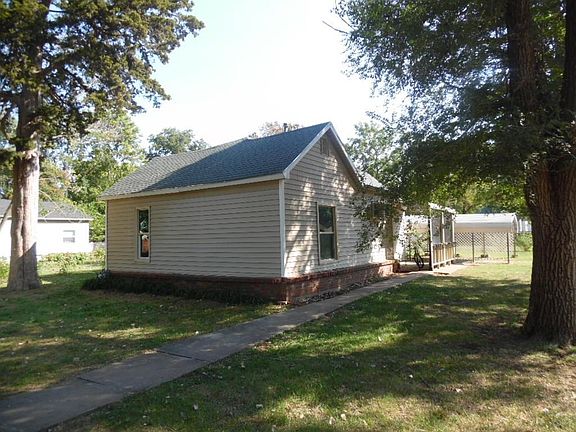 Cute smaller 3 bdr, one bath home in great neighborhood on corner lot in Fredonia Ks. Smaller rooms but very livable, open kitchen with island, pantry, area for washer/dryer. All appliances stay contingent on offer price. Selling as:issas seller is relocating. Carport on east side of home along with older garage/shop. Newer double paned windows thru out. Roof and siding looks in good shape. Small covered porch on south side that enters into kitchen area.