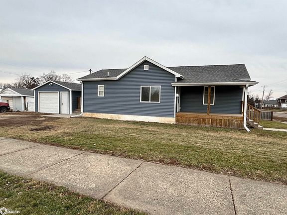 Cute 2 bedroom home located on corner lot. Cheaper than rent! Detached garage. Front and back deck. Nice sized living room. Dining area off the kitchen. One bedroom has laundry hookup. Permanent siding. 2019 old roof tore off, sheeting replaced and new shingles. Call today!
