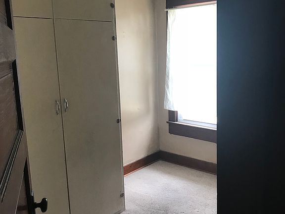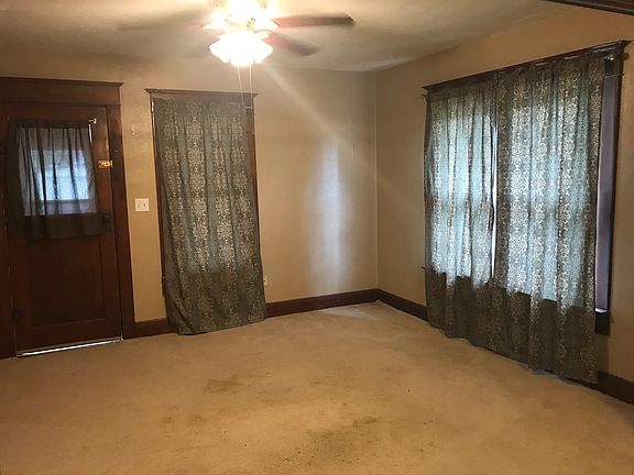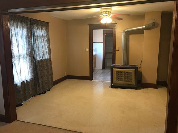 Remodeled bathroom, full basement with washer and dryer, enclosed front and back porch, fenced in backyard, window AC units, gas stove for heating, refrigerator, stove and microwave provided, single car unattached garage.