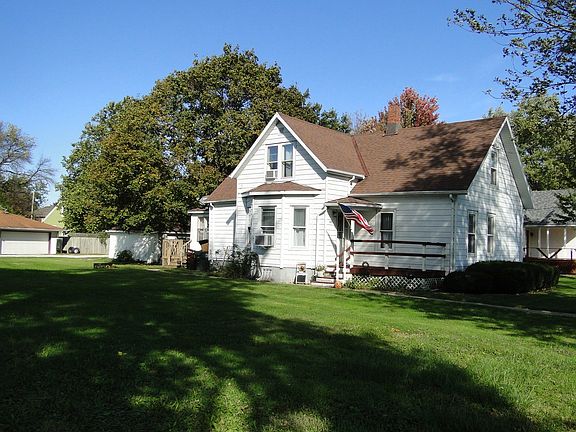 Charming 2 Story home in Danforth. Minutes from I 57 access. The open floor plan on the main level features LR, FR / DR Combo, kitchen w/ walk in pantry & office. Upstairs features two additional bedrooms and a den. Lots of built in storage upstairs! Two car detached garage and large lot. The main level living room was once a master suite with French doors. Sellers still have doors and could easily convert it back. Updates Include: Electrical, HW Heater