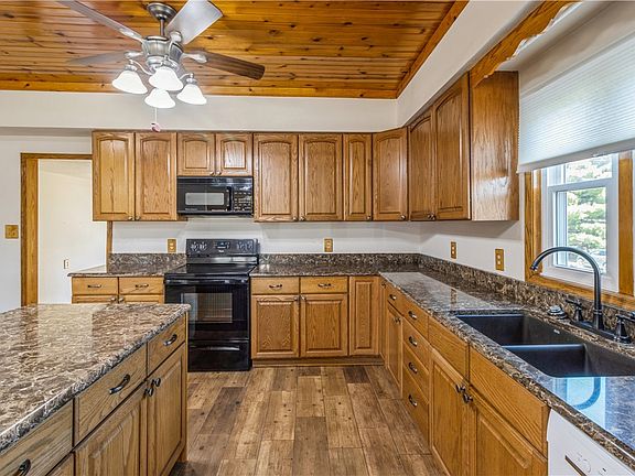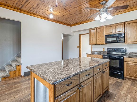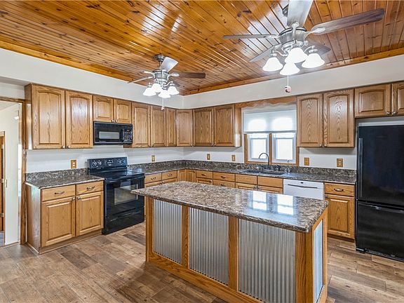 The spacious living room is perfect for gatherings and entertaining, while the dining/sunroom surrounded by windows offers a peaceful retreat to enjoy your morning coffee or unwind with a book. The center island in the kitchen is ideal for meal prep and casual dining, with wood ceilings and tile floors adding a touch of rustic elegance.