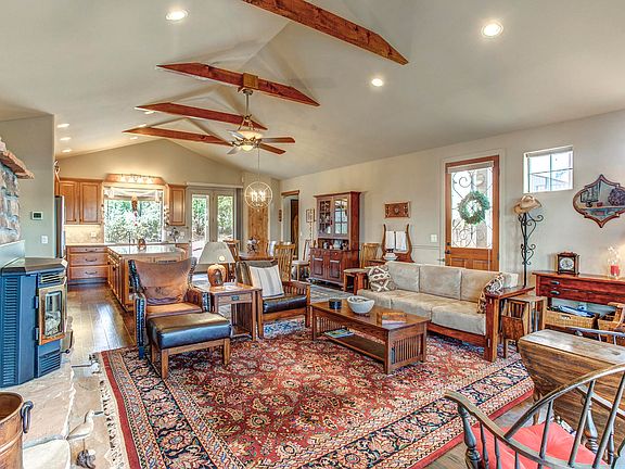 Beautiful Manzanita Hills home with Great Views! This 3 bedroom, 4 bathroom home features 2,259 Sq. Ft., a family room, 2 master suites, a 3 car garage, RV parking and a large unfinished basement that is great for storage and could be a workshop. The living room has vaulted ceilings with exposed beams, wood floors, an open floor plan, and a pellet stove with great stonework. The kitchen has granite counter tops, a dual fuel double oven, pantry, a large island, and a breakfast bar. The master suite features a private deck, walk-in closet, his & her sinks, a garden tub, and walk-in shower. The second master has a walk-in closet and a full bathroom. Outside there is beautiful landscaping, a back patio perfect for extra entertainment space. Additionally, there is a covered front deck where you