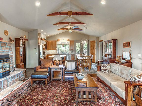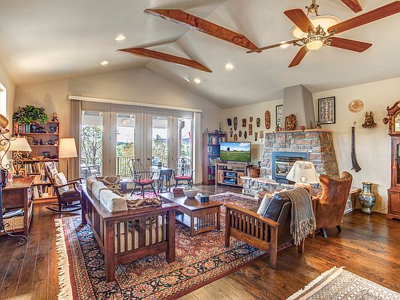 - Exterior Features: Covered Porch/Deck, Porch/Deck, Landscaped, In the Trees, Covered Patio, View of Mountains, Patio, Panoramic Views, Work Shop, View of Town