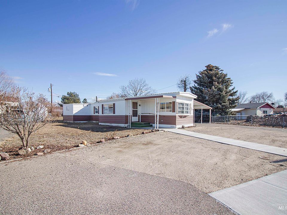 Great retirement home or investment property! Due to the age of the older manufactured home, a 1st time buyer won't be unable to get an FHA loan but if they can qualify for a conventional loan this would be a great first home with a double carport and all appliances included with an acceptable offer. Situated on a large lot with 2 bedrooms, 1.5 baths. New vinyl floors in living & dining rooms. Storage room off the kitchen that could function as a pantry. Close to Hwy 95, downtown, parks, and schools.