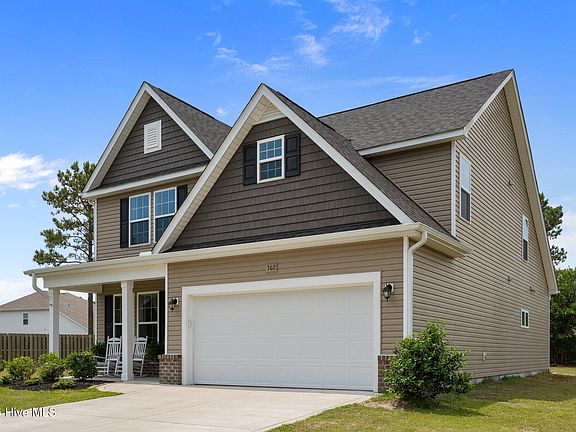 Welcome to 302 Neuse Drive, a beautifully maintained two-story residence nestled in the sought-after Village at Folkstone Community. Built in 2020, this 2472 sq ft. home seamlessly blends modern design with everyday comfort. The open concept main level boasts a cozy fireplace in the living room, flowing effortlessly into the dining area (complete with custom coffered ceilings) and a chef's dream kitchen. The gourmet kitchen is equipped with granite countertops, stainless steel appliances and a central island offering additional seating and storage. The primary suite is located on the main floor and features a custom coffered ceiling, a luxurious 5-piece ensuite with dual vanities, a soaking tub, separate shower and a generous walk-in closet that conveniently opens up to the laundry room. Upstairs, a versatile loft area provides the perfect spot for movie nights or a cozy retreat. Two of the upstairs bedrooms feature large walk in closets- perfect for storage! This home is zoned for the well-regarded Dixon schools and is conveniently located 19 Miles from Jacksonville, 37 miles from Wilmington and 11 miles to Topsail Islands stunning beaches.