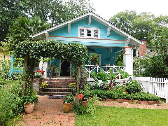 Beautiful 1920's One Story "Key West Craftsman" in Historic Candler Park with Palm & Banana Trees. ASKING $699,000...Walking distance to Iverson Park Soccer Field, Schools, Fox Brothers BBQ, L5P's Restaurants, Edgewood Shopping District, MARTA, AND Candler Park with Pool, Tennis Courts, Golf Course, and Playground. Off Street parking. Low Maintenance Front Yard w/White Picket Fence, Fully Fenced Shady Mature tree lined Backyard...4 Fireplaces (2 Original Mantels,1920's), Original 6 Panel Doors with Plinth Blocks and matching 1920's hardware(1920's), 4 over 4 Craftsman Windows(1920's) with Storm windows. Lovingly Maintained & IMPROVED over the last 30+ Years with 200Amp wiring, Heavy Molding, Craftsman Box Beam Ceilings, 2 New Bathrooms, HIS & HERS (2013), Antique and Period Light Fixtures, Stained Glass Front Door(2008) Original Transom(1920's), New Kitchen w/Walk-in Pantry(2015), Washer and Dryer Laundry Room with Storage Shelves, Tankless hot water heater. Brick front steps and walkways. Newer sewer and water supply lines. Backyard detached Garage with Glass Enclosure, 2012 (Work-Shop/Spa/Studio/Green-House building) Rewired for 220V Hot Tub, attached Tool Shed. HIGH SPEED Internet thru Comcast(Xfinity). 6 FREE EV Charging Stations across the street in the MARTA parking lot.