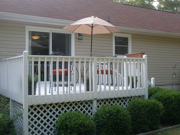 Fish from your own back yard with this home on 2.53 acre lot with jointly owned pond! Spacious one level home with vinyl siding, rocking chair front porch, wood floors in foyer, hall, kitchen & dining area. Carpeted great room has cathedral ceiling & fireplace. Cathedral ceiling in master suite, garden tub & separate shower in master bath. All 3 bedrooms are carpeted. Sliding glass doors off dining area open up to back deck overlooking pond. Brand new HVAC.