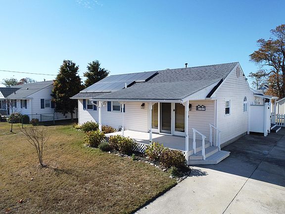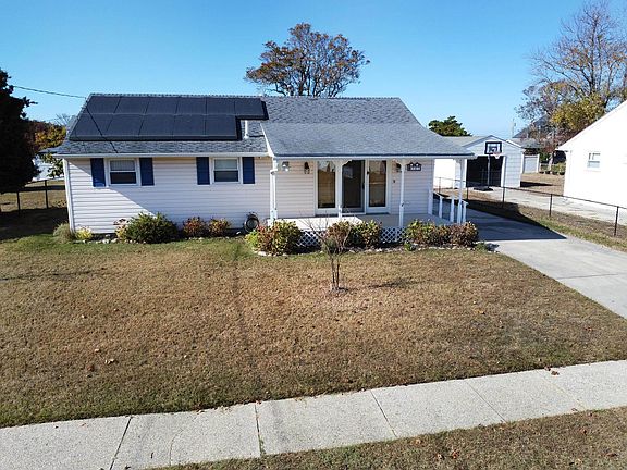 Enjoy bayside living at its best! This expanded 3-bedroom, 1.1-bath home in North Cape May is located just two short blocks from the bay and its beautiful beach walks and sunsets. Situated on a meticulously maintained 66 x 125 lot, the exterior features recently power-washed, low-maintenance vinyl siding and two sheds—one with a built-in workshop and the other used for gardening and storage, both fully equipped with electricity. The front sliding door opens to a large living room where you can relax by the electric fireplace on a cool evening. The living room flows into the kitchen and dining area, which boasts a cathedral ceiling and two skylights. The kitchen is equipped with solid wood cabinetry, a freestanding island with additional storage and seating for two, a gas stove, and Corian countertops. From the dining area, step through the rear slider to a beautiful screened-in porch overlooking the backyard and evening sunsets. Off the kitchen is a laundry room leading to the half bath and master bedroom. The fully fenced backyard features a brick patio, hot tub, and trellis. This home includes two large bedrooms, both with king-sized beds, and an additional guest room with twin beds. The recently renovated full bath in the hall features a tile floor, beautifully tiled walk-in shower with a glass door, and a marble-topped vanity. Don't miss this opportunity—this North Cape May ranch home with first-floor living, central air, gas heat, and a prime location just a short walk to the bay!